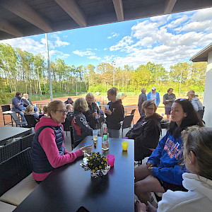 In unserem neuen Clubhaus mit Clubraum und Terrasse könnt ihr euch vor, während und nach dem Sport treffen.