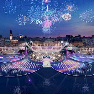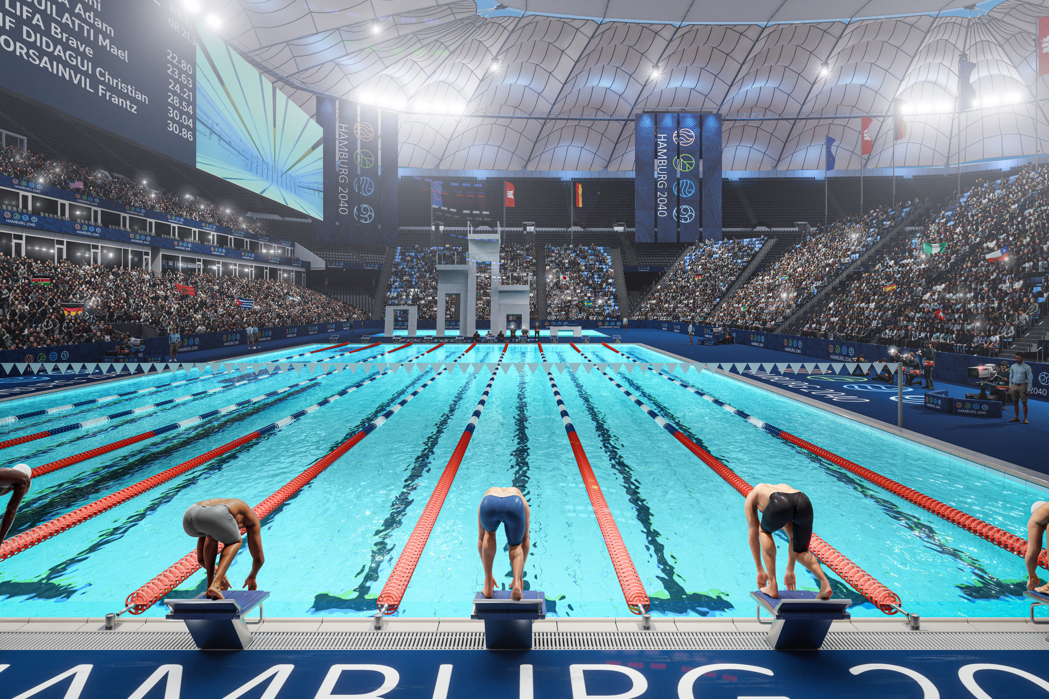Zwei zentrale Olympic Parks in Altona und der City verbinden Spitzensport mit urbanem Leben. Die Eröffnungsfeier auf der Binnenalster mit schwimmenden Plattformen in den Olympischen Ringen wird zum weltweiten Symbol für Offenheit. Während der Spiele verwandeln sich Alster, Hafen und Parks in Wettkampforte für Triathlon, Bogenschießen und 3x3-Basketball. Das Olympische Dorf entsteht in der Science City Bahrenfeld und wird nach den Spielen zu einem modernen Wissenschaftsquartier.