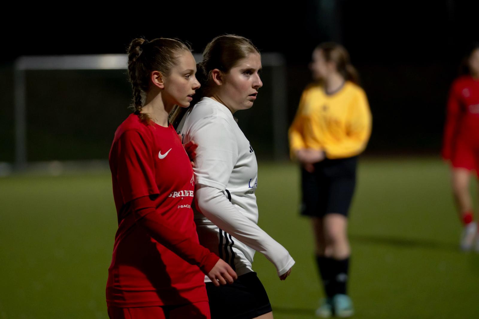 Das Team startete mutig und setzte die höherklassigen Gegnerinnen früh unter Druck. Nach einigen starken Ballgewinnen belohnte sich das Team mit zwei sehenswerten Treffern: