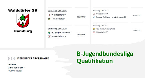 Für unsere mB1 geht es am Wochenende in Rostock um die Quali für die B-Jugendbundesliga. Kommt vorbei und untersützt uns!