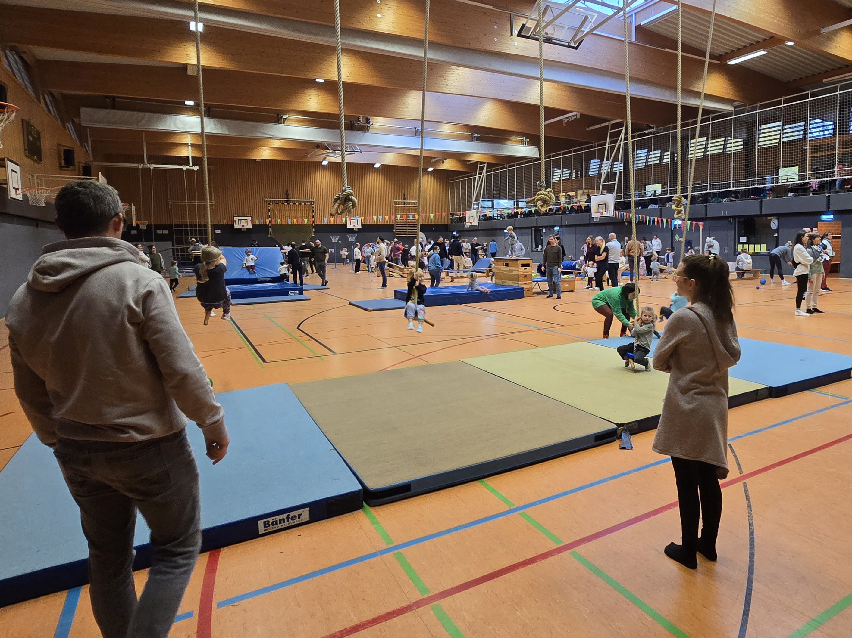 320 turnbegeisterte Kinder und Eltern haben die Bewegungslandschaft zum Beben gebracht. Nicht nur an der Kletterwand , vielen Dank liebes Kletter-Team, dass ihr jedes Jahr uns beim Kinderturnsonntag unterstützt, sondern auch an den zahlreichen Bewegungsstationen wurde ordentlich geturnt und getobt.