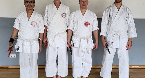 Am 13.10.2024 haben sich vier weitere Kobujutsuka der Prüfung zum 3. Kyu (Prüfungswaffe: Sai) gestellt - und diese erfolgreich bestanden!