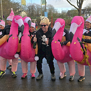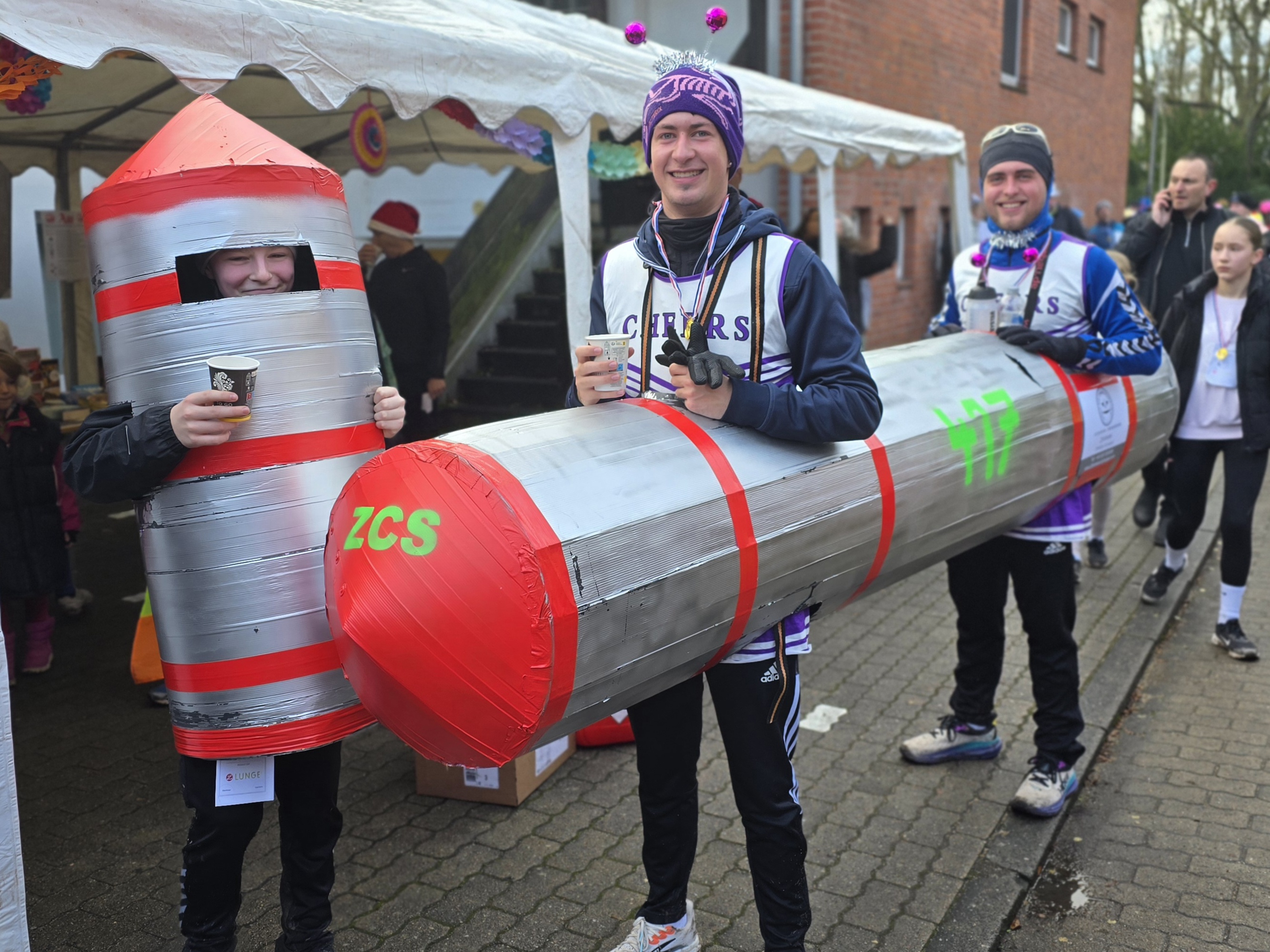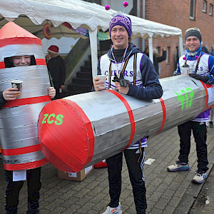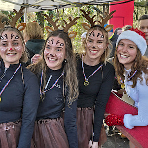 Und dann fiel der Startschuss! Fast 5 Minuten dauerte es, bis sich alle 1.913 kleinen, mittleren und großen Läufer in Bewegung gesetzt hatten. Mit dabei waren Rentiere mit Schlitten, Flamingos, Schnecken, aber auch ein Gorilla, eine Rakete und viele andere verrückte Verkleidete, die von den Zuschauern an der Strecke laut angefeuert und beklatscht wurden.