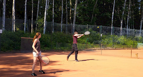 Gemeinsam schlemmen, trinken, quatschen und Tennis spielen.